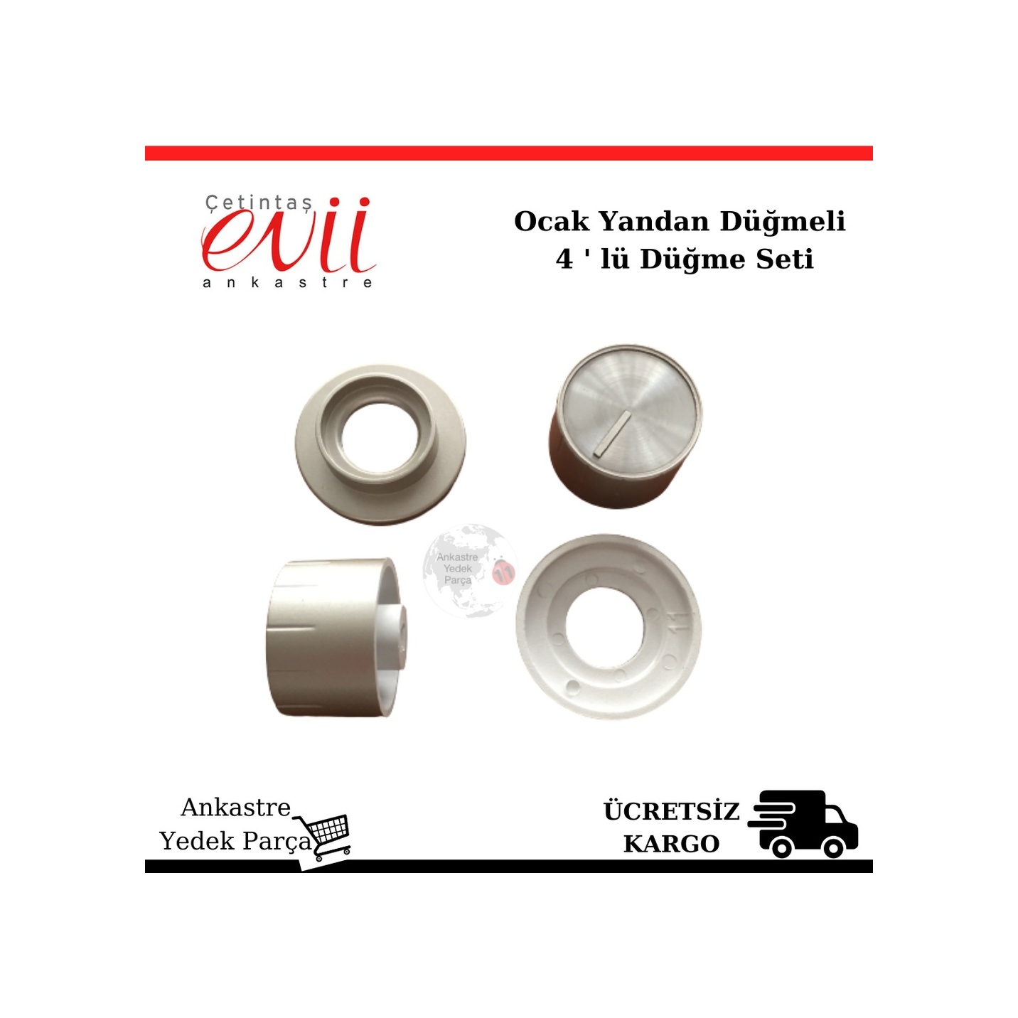Çetintaş Evii Ankastre Setüstü Ocak Gri 4 lü Yandan Düğme Seti
